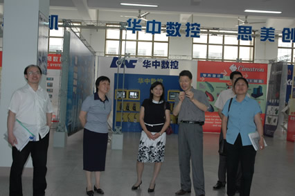 2006年6月11日,教育部高等教育司高职高专处处长范唯,在省教育厅高教处处长王煌、副处长经贵宝陪同下,对我院进行了玛雅吧 检查。图为部、厅有关方面领导考察产学合作中心。