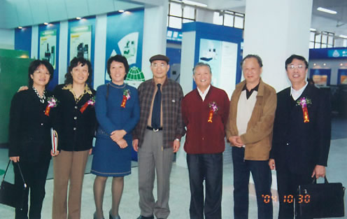 中国产学合作教育学会会长朱传礼(左四)和原省机械厅厅长苏泽民(右三)在我院产学研合作中心合影。
