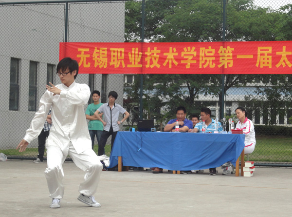 5月15日下午,我校第一届太极拳比赛在体育场拉开帷幕,本次比赛是由体育部主办,校太极拳协会协办,共有200多名学生参加了比赛。最终,数控11133班董竞、电气21131班杜涛、电气21131班高翔同学分获前三名。体育部直属党支部书记常华、体育部主任任华宝元为获奖选手颁奖。(体育部 王坤)