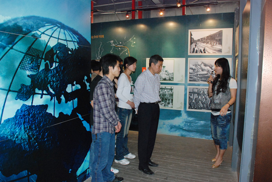 在整个展线中还特别设计了一个开放式的放映厅,放映由该馆精心组织拍摄的《百年辉煌 民族精英》纪录片,通过影像资料反映中国民族工商业的发展历程,使参观者在这里既能了解工商文化,又能得到适当的休息。