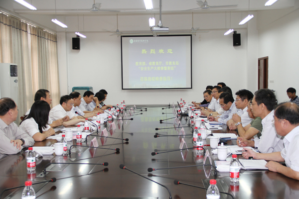 在实地察看了太湖校区食堂和学生公寓、了解我校办学条件和安全工作现状后,督查组成员、北京市教育学会学校卫生分会副主任医师潘勇平和首都经贸大学保卫处处长何洪义针对我校安全生产和管理工作提出了指导性意见。省教育厅安稳处调研员魏赞荣介绍了省内学校安全管理工作的总体情况。督查组组长、教育部科技司副司长雷朝滋在讲话中充分肯定了无锡市及我校的安全管理工作,指出安全工作是学校各项工作的基本保障,要求在今后的工作中要进一步加强领导,健全管理体制和相关机制;进一步加强安全教育;进一步梳理、完善相关制度,健全安全生产的长效机制;进一步抓好具体工作的落实,如把安全监控纳入数字化校园建设范畴,加强学生实习实训的安全管理等。