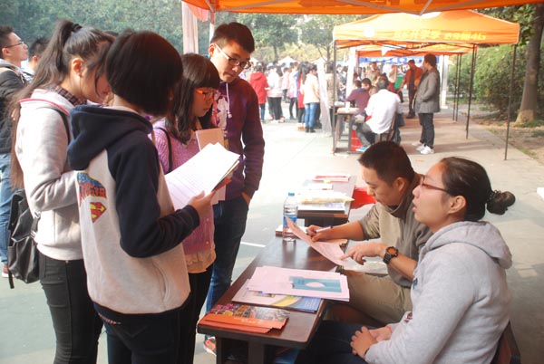 为了进一步搭建校企人才合作平台,扎实有效地开展毕业生就业服务工作, 11月22日,经济管理学院主办的2015届毕业生大型校园招聘会在中桥校区有序展开。