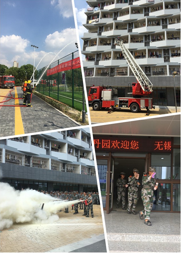9月17日下午,2019级新生应急疏散及消防灭火演练在学生公寓区举行。副校长强伟纲挂帅指挥,校保卫部与无锡市消防救援支队特勤一中队指战员、2019级新生军训教官联合组织,学生处、后勤处、各二级学院新生辅导员、驻校保安项目部参与了此次演练。