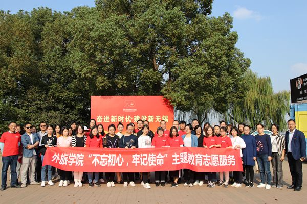 为扎实推进“不忘初心、牢记使命”主题教育工作,进一步提高全体党员服务意识。11月5日,外语与旅游学院组织全体党员赴鼋头渚十里芳堤开展了以“不忘初心、牢记使命”为主题的环保志愿服务活动。