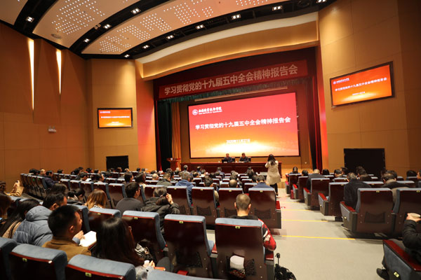 为认真学习贯彻党的十九届五中全会精神,开启学校发展新征程,11月26日上午,玛雅吧 举办专家报告会暨党委理论学习中心组(扩大)学习会。校领导、全体中层(含助理)干部、全体思政课教师、全体辅导员、部分学生代表等近200人参加报告会。会议由校党委书记朱爱胜主持。