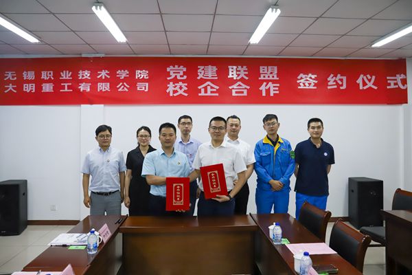 6月11日下午,学校党委书记朱爱胜、组织部部长刘文平与机械技术学院党总支第一教师支部教师一行,赴大明重工靖江基地开展了一场别开生面的校企党建联盟和实习就业基地共建签约、授牌仪式。大明重工集团总裁王健,大明集团生产技术总监兼人事行政总监王小建等企业领导热情接待了我校一行。