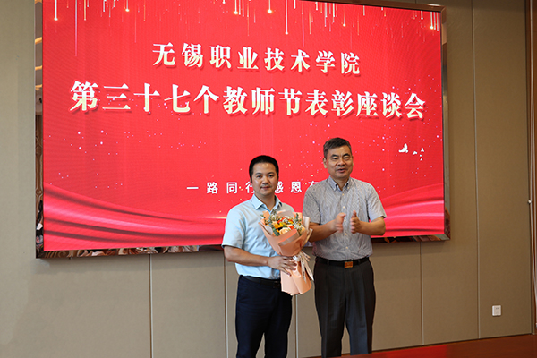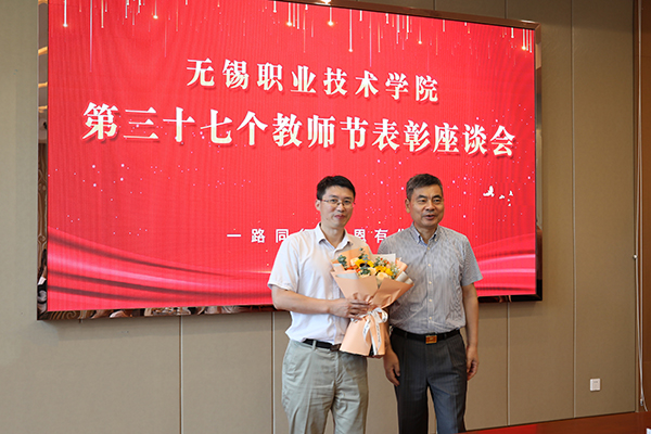 表彰座谈会由校长龚方红主持,校党委书记朱爱胜宣读了第二批国家级职业教育教师教学创新团队文件、教育部课程思政示范项目获批名单,奚茂龙教授领衔的“电气自动化技术专业团队”入选第二批国家级职业教育教师教学创新团队,王骏老师领衔的教学团队《数控编程及零件加工》课程获批教育部课程思政示范项目。
