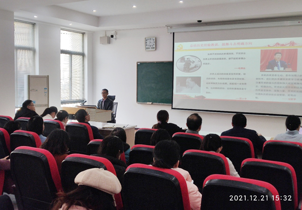 在主题为“百年辉煌的密码解锁——十九届六中全会精神解读”的党课上,徐浪围绕百年辉煌的定海神针、成功密码和新程再启三方面,给党员教师们讲述了百年历程中三份《历史决议》的产生与巨大价值,解读了百年辉煌的数字密码,提出要深刻认识决议的重大意义与深远影响,弘扬伟大建党精神,响应党中央号召创造新的历史。