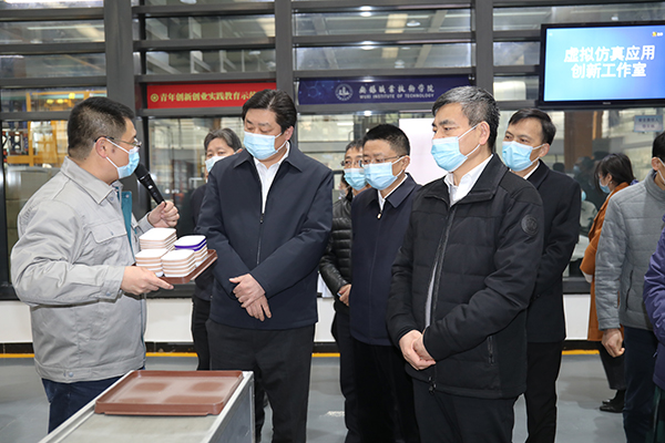 1月7日下午,无锡市人民政府代市长赵建军带队深入我校专题调研,副市长秦咏薪,市政府办公室、市发展改革委、市教育局、市财政局、市自然资源规划局、滨湖区政府等领导陪同考察调研。我校领导朱爱胜、龚方红、周桂瑾、吴慧媛及相关职能部门、学院负责人参加调研。