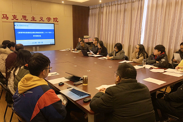 1月4日下午,马克思主义学院组织全体教师学习研讨教育部印发的《高等学校思想政治理论课建设标准(2021年本)》。
