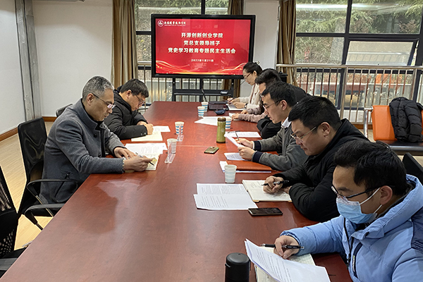 根据学校党委《关于认真开好党史学习教育专题民主生活会的通知》精神,开源创新创业学院党总支于1月21日下午在部门202会议室召开党史学习教育专题民主生活会。校党委副书记周桂瑾莅临指导,党委组织部相关负责人到会督导。开源创新创业学院党总支领导班子出席会议,教研室、科室负责人列席会议,会议由党总支副书记曹小兵主持。