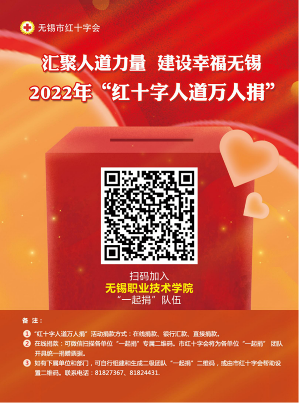 按照无锡市红十字会等部门发起的《2022年“红十字人道万人捐”》倡议,现在全校范围内开展募捐活动。