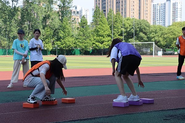 本次素质拓展活动,有“摸石过河”,“投壶问鼎”、“同心击鼓”等多个拓展项目环节。在场学生分为“橙”、“紫”、“绿”三个小组,活动逐层深入,消除了师生彼此心中的不熟悉感和羞涩感。“投壶问鼎”环节中,每组2名代表各取10支竹箭,进行投“壶”,其他组员帮助调整方位;“摸石过河”环节,同学们踊跃尝试、相互鼓励,快速过河;“同心击鼓”环节,各小组成员围成一个圆圈共同控制着鼓面,齐心协力共同击球。经过三个环节比拼,最终“绿”队小组获得冠军。