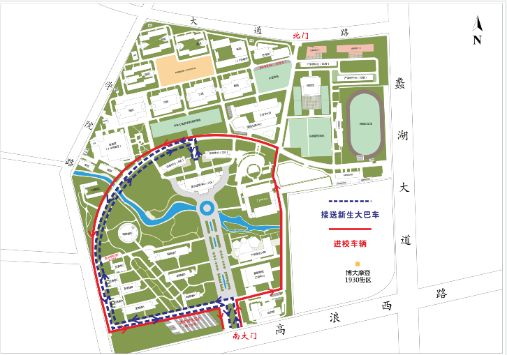 新生报到校内交通通行示意图