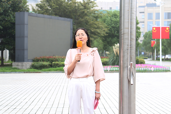 杨雪琴在国旗下讲话,她深情阐述了中国共产党领导中国人民不惧艰苦、不畏牺牲建立新中国所凝聚起的伟大精神力量,勉励在场全体师生不负先烈、不负时代、不负青春,努力造就新时代的光辉业绩。