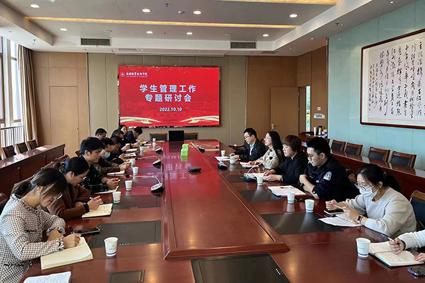为进一步加强部门之间协同联动,共同有效地解决学生管理工作中的实际问题,10月10日下午,学校在综合楼F201会议室召开学生管理工作专题研讨会。校党委副书记杨雪琴,学生处、保卫处、马克思主义学院、团委等部门负责人,各二级学院总支书记,雪浪派出所相关人员等出席会议,会议由学生处处长徐悦主持。