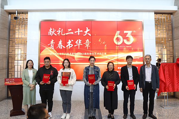 周桂瑾和杨雪琴共同为本次联展揭幕。周桂瑾在讲话中指出,本次艺术作品展是学校师生讴歌党和祖国、立志成才报国的艺术表达,是学校美育实践和人才培养的重要窗口,更是学校传承红色基因、弘扬工匠精神的生动写照。他希望全校相关部门继续做好美育实践平台和美育品牌活动的建设,持续激发师生创作高水平艺术作品的热情,塑造高质量校园文化精神。