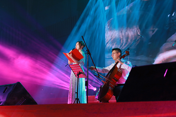晚会现场,一段动感十足的开场舞《RUN》点燃了全场气氛,伴随台下热烈的掌声,小合唱《我和我的祖国》《有我》、器乐《天鹅》依次上台演出,充分展现了新时代青年的热血激情;朗诵《小河淌水》以真挚的情感呈现出青年铭记历史、奋发进取的铮铮誓言;合唱《强国一代有我在》《走向复兴》《国家》《歌唱祖国》等歌曲无不体现着拳拳爱国爱党之心,将爱国情绪渲染全场,唱响青年人的责任与担当;《你最最重要》、《不为谁而作的歌》则表现出青年的活力,明亮轻快的节奏瞬间点燃现场观众的热情。为了让更多的锡职师生享受这一场视听,晚会还通过网络进行了直播,在线观看近七千人次。
