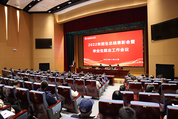为进一步适应招生就业工作的新形势,激发全校师生参与招生就业工作的积极性,提升招生就业的工作水平,11月23日下午,学校在综合楼一楼报告厅召开2022年招生总结表彰会暨毕业生就业工作会议。招生办、教务处、学生处相关负责人,各二级学院党总支书记、副书记、毕业年级辅导员,各招生宣传片区负责人及招生宣传骨干、招生先进个人等100余人参加会议。校党委书记龚方红出席会议并讲话。会议由党委副书记杨雪琴主持。