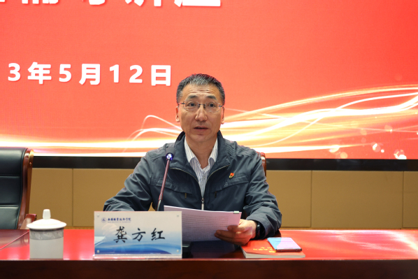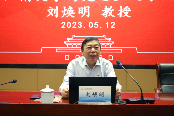 为深入推进学习贯彻习近平新时代中国特色社会主义思想主题教育工作,提升主题教育读书班学习质效。5月12日上午,学校在厚德楼一楼报告厅特邀江南大学马克思主义学院二级教授、博士研究生导师刘焕明作题为《学好弄通总书记著作紧跟核心忠诚担当》的主题教育专题辅导讲座。会议由我校党委书记龚方红主持,校领导班子成员、全体中层干部、各党支部书记、全体马院教师参加了本次讲座。