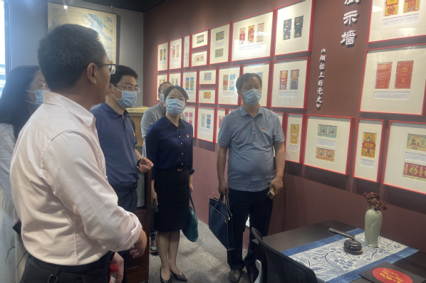 党课结束后,指导组成员还实地考察了设计艺术学院《烟标上的党史》“云起工坊”等党员工作坊和“绎江南”文化传承创新基地,参观了设计艺术学院举办的2023届毕业设计展。