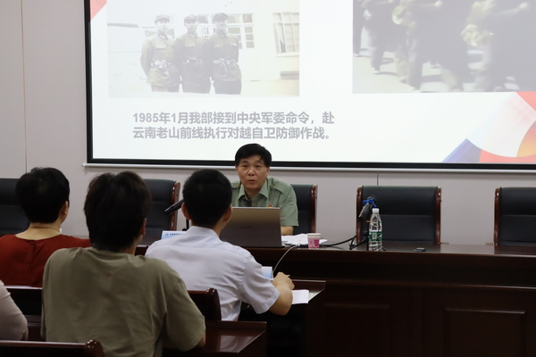 为充分发挥军休干部红色资源优势,引导广大青年以英雄模范为榜样,砥砺前行,争做堪当民族复兴大任的时代新人,近日,管理学院邀请无锡市军休中心溪南服务站关工委主任丁解新来校以“铁血军魂”为主题进行交流分享。此次讲座为管理学院党总支“义心毅行”之系列活动。管理学院党总支书记宋瑞超主持活动,管理学院关工委常务副主任邹笑言和近六十名师生参加专题讲座。