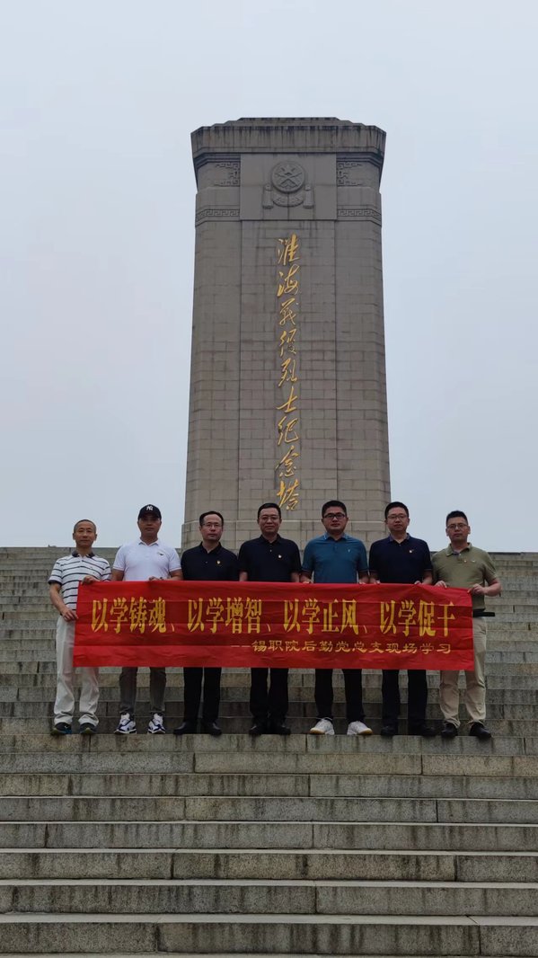 6月16日至17日,副校长储开峰带领后勤党总支各部门负责人,分别来到江苏建筑职业技术学院思想政治教育基地和淮海战役纪念馆参观,学习贯彻习近平新时代中国特色社会主义思想,坚定理想信念、提升思想境界、加强党性锻炼,为思想、作风、党性“补钙”,以学铸魂、以学增智、以学正风、以学促干,推动主题教育走深走实。