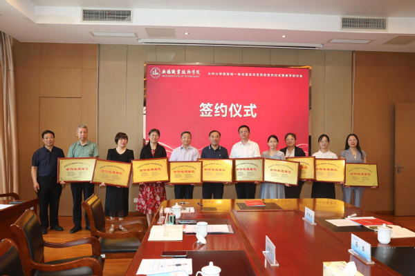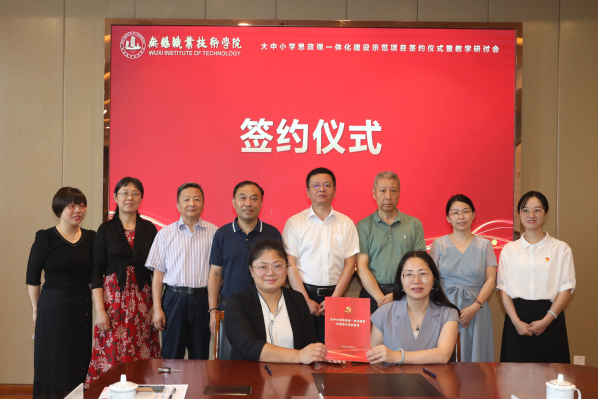 在开幕式环节,主持人介绍了由我校牵头、无锡商业职业技术学院等十家单位联合申报的“‘三通三创’大中小学思政课一体化建设”项目具体情况。杨雪琴在致辞中指出,项目组要积极谋划、创新举措,实现共商共建、共享发展,努力把项目建设为省内特色的大中小学思政课一体化建设示范项目。随后,我校作为牵头单位与无锡商业职业技术学院、江南影视艺术职业学院、无锡金茂商业中等专业学校、无锡文化艺术学校、无锡市第六高级中学、无锡市第一女子中学、新吴区教师发展中心、无锡市新吴区第一实验学校、无锡市河埒中心小学共十家单位举行了签约仪式。
