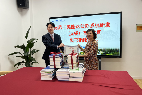 6月30日,柯尼卡美能达公办系统研发(无锡)有限公司向我校图书馆捐赠图书,捐赠仪式在图书馆举行。柯尼卡美能达公办系统研发(无锡)有限公司总经理坪谷芳和、改革推进部、人事科相关负责人,我校图书馆馆长韩冰、副馆长王东亮及相关工作人员出席仪式。