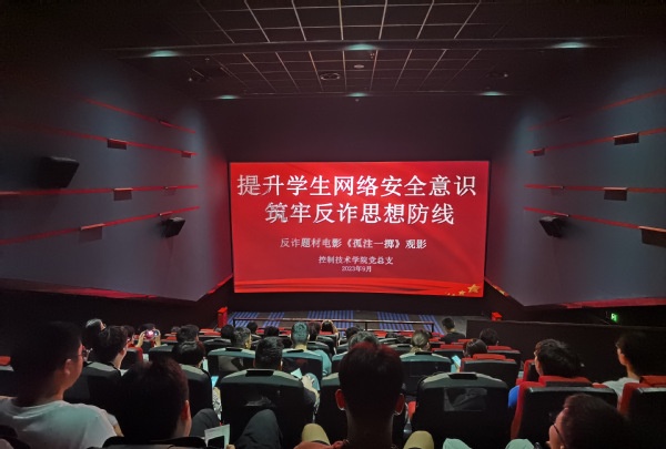 为深入贯彻习近平总书记对打击治理电信网络诈骗犯罪工作的重要指示精神,推进校园反诈宣传工作,进一步加强防范电信网络诈骗宣传教育,筑牢防范电信网络诈骗思想防线。控制技术学院党总支开展反诈观影活动,9月7日晚,控制技术学院教师党员、各班安全信息员、关工委老同志等四十余人集体观看反诈题材电影《孤注一掷》。
