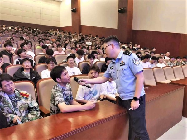 杨恺从当前电信网络诈骗犯罪的总体情况、电信网络诈骗的定义和基本特征、诈骗产业全链条情况等方面,向同学们介绍了电信网络诈骗给校园和社会带来的巨大危害,并结合近期发生在校园的多起诈骗案例,针对性地分析了其中表现出的受害人心理状况,重点讲解了如何识别网络贷款、刷单返利、网恋裸聊、网络游戏虚假交易等一系列常见的电信网络诈骗手段,为师生强化安全防范意识、有效预防网络诈骗等方面提出了许多实用的方法,进一步增强了同学们识骗防骗的意识和能力。讲座现场气氛热烈,同学们积极主动和民警进行互动交流,咨询在生活中遇到的安全问题,分享防范诈骗的想法和做法。大家纷纷表示,这是一场生动且深刻的开学第一课,对于平安校园建设和全民反诈有了更加深刻的认识,收获良多。