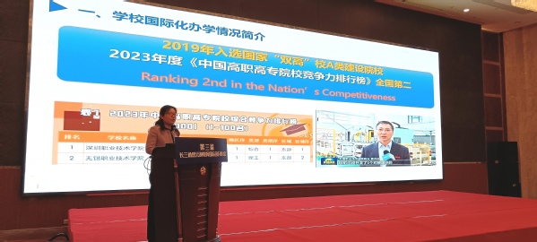 下午,吴慧媛代表我校以《整合优质资源,打造职业院校国际合作品牌》为题作了大会报告,强调要优化国际发展路径,强化国际人才培养,聚焦“一带一路”倡议,深化中外人文交流,探索职业教育对外开放走深走实,行稳致远,受到了与会领导专家的高度评价。