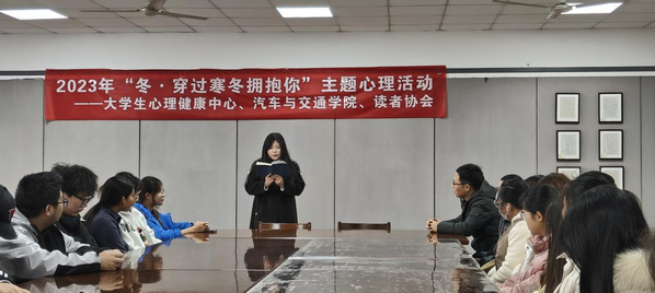 12月12日,由大学生心理健康教育中心、图书馆主办,汽车与交通学院承办、读者协会协办的“冬·穿过寒冬拥抱你”主题心理活动——冬日读书会,于图书馆401室成功举办,40余名师生参加了本次读书活动。