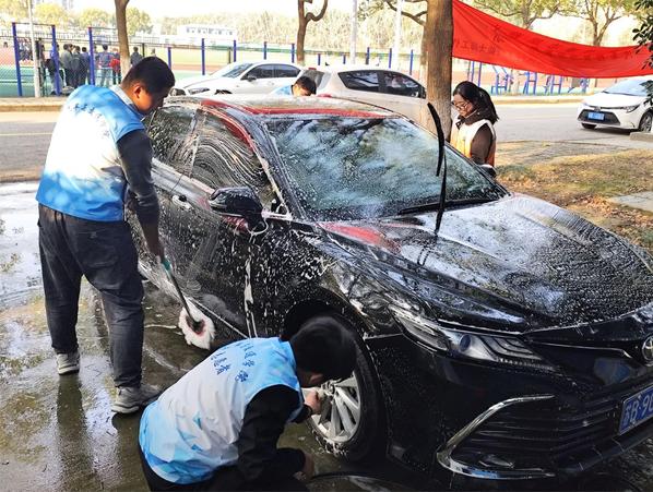 志愿者来自学院“汽车检测与维修技术”“汽车制造与试验技术”等专业,经过前期专业培训,动作十分娴熟,全套洗车程序分工明确,有条不紊。历经汽车接待、高压喷水、喷洒泡沫、全车冲洗、车内吸尘、擦干、交车等多道工序,志愿者们热情高涨,一丝不苟的完成每个环节。最后,通过志愿者的共同努力,近20辆教职工汽车变得焕然一新。“汽车学子专业水准过硬,洗车效果比在洗车店都好,给他们点赞!”前来洗车的教师张鹏博说。