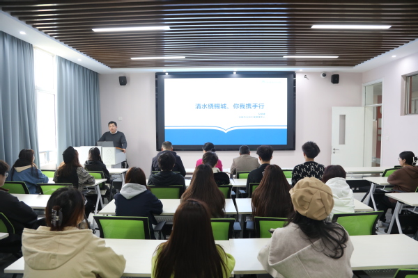 随后,倪晓峰在至善楼B304多媒体会议室向我校师生开展了“清水绕锡城,你我携手行”专题讲座。通过生动的讲解和视频展示向师生们传达了节约用水和保护水资源的重要性,并普及了相关法律法规。他呼吁大家从点滴做起,养成节水环保的良好习惯。