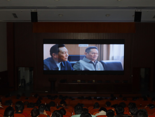 为献礼学校思想政治理论课教师座谈会召开五周年,积极推动构建大思政课工作格局。4月11日晚,全国首部思政课题材轻喜剧影片《我要当老师》在我校国教一楼报告厅温暖献映,马克思主义学院教师及学生代表等350余人参加观影,同上一堂鲜活生动的思政课。