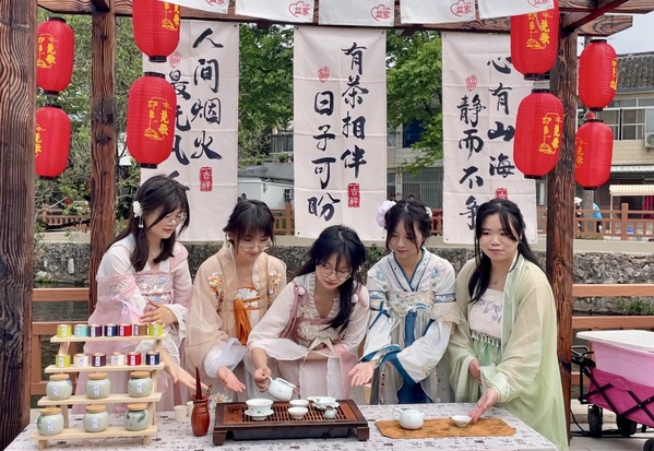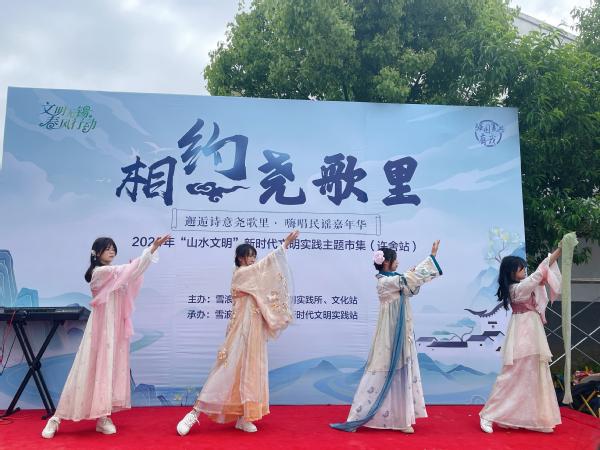 集市,是集政治整合、经济贸易、文化娱乐为一体的综合场域,是活化许舍尧歌里本土资源的重要组织形式。文化传承,需要青春的力量,财经学院志愿者们带着满腔热情,为“潮聚尧歌集市”活动指挥交通、整理摊位和宣传向导,与孩子们体验韵味十足的非洲鼓,与糖画手艺人学习龙飞凤舞的线条勾勒,与尧歌里共同见证新农村建设。学院汉服社同学带来的《礼仪之邦》尽现传统文化的俊逸,赢得现场阵阵掌声。此外,同学们还主动了解尧歌里特产特色,身体力行,化身村落绿茶代言人,开启助农模式。