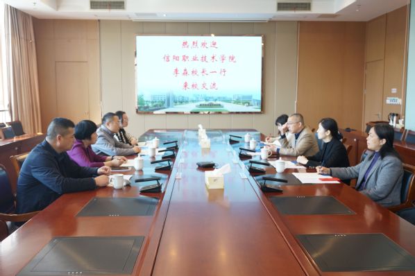 4月10日上午,信阳职业技术学院校长李森一行4人来校调研交流。副校长强伟纲及相关部门负责人在厚德楼F201会议室接待来访客人。