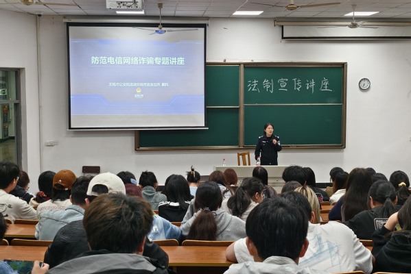 为了全面贯彻习近平法治思想和习近平总书记关于教育的重要指示精神,进一步加强大学生的法治教育和网络安全意识,4月29日下午,管理学院特别邀请雪浪派出所戴科民警在j4-101教室举办主题为“防范诈骗、共筑安全”的反诈宣传知识讲座。此次活动旨在帮助学生提高识别和防范网络诈骗的能力,进而形成全校范围内的安全防线,保护每位学生的财产和信息安全。