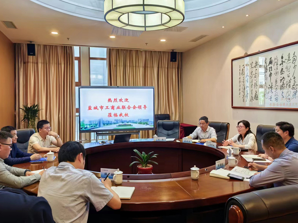 为拓展无锡盐城两地经济发展,促进毕业生更好就业,5月14日下午,盐城市工商联副主席赵德生、江苏省人大代表、盐城市总商会副会长、响水县不锈钢产业商会会长许小军、盐城蓝拓建设有限公司董事长、我校06级供热50631班校友孙元勋、软通动力无锡区域负责人韩超来校调研交流,我校校长周桂瑾、副校长吴慧媛出席接待并主持座谈,科产处,招就处、国教院等相关部门负责人参加交流。