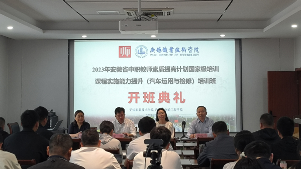 5月13日,2023年安徽省职业院校教师素质提高计划国家级培训汽车运用与维修课程实施能力提升培训班在我校汽车与交通工程学院二楼培训教室开班。校党委副书记杨雪琴、继续教育与培训部、汽车与交通工程学院等部门相关负责人,以及培训班全体学员出席开班仪式。