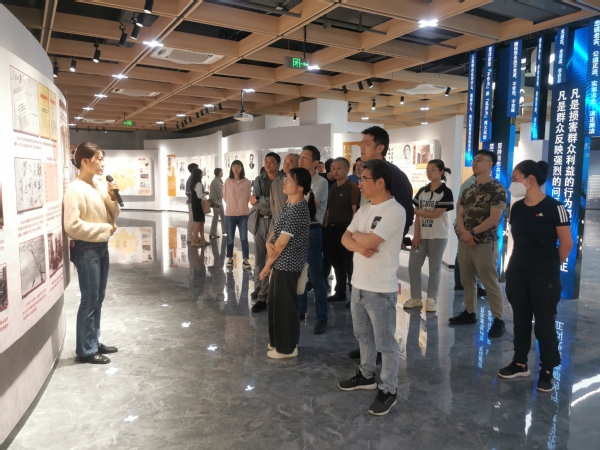 在展馆门厅,全体党员驻足观看了《亲清无锡 薪火相传》宣传片,接着在讲解员的带领下,依次参观了“工商摇篮 筚路蓝缕”“春雷乍响 实业兴邦”“亲清政商 惠企赋能”“铁纪护航 警钟长鸣”四大主题展区,回顾无锡工商发展历程、听取无锡政企共谋发展的生动故事、优化营商环境的重大举措、剖析违纪违法典型案例,从古与今、政与商、“亲”与“清”三个维度,探寻无锡工商历史中构建亲清政商关系的文化根脉。在互动体验空间,党员们积极参与互动:在每个政商交往的关键场景中做出的选择,每个选择都决定着故事的发展,深刻体验“坚守初心”和“迷途知返”等不同的结局走向。最后在思廉厅,共同观看警示教育片《界线》。