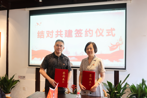 参观结束后,马克思主义学院党总支与荣巷街道梅园社区党总支举行了结对共建签约仪式,黄旭和赵后起相互介绍了街道和学院基本情况,并就相关共建内容交换意见,协议通过互学共研、资源共享、经验分享、优势互补,促进双方党建理念提升、党建工作创新、党员队伍建强、党建与业务双融双促。