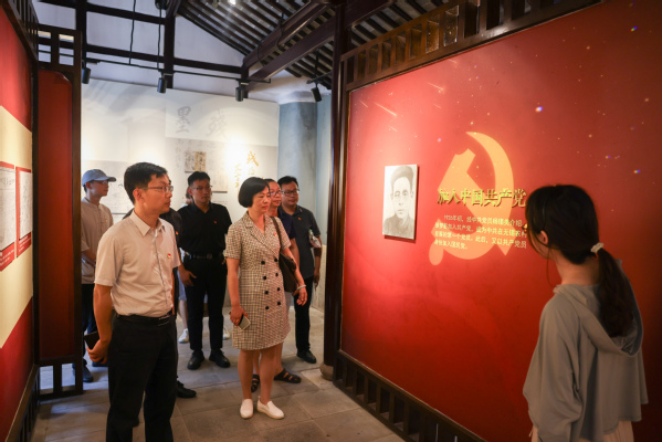 大家首先参观了徐梦影故居(徐巷农民俱乐部旧址),在讲解员带领下大家了解到徐梦影是无锡农村地区发展的第一位中共党员,他的故居是无锡农村第一个基层党支部、第一个基层农民协会的发源地,见证了徐梦影烈士为革命事业作出的杰出贡献。全体党员走过徐梦影当年生活的书房、卧室等场景,回忆那段峥嵘岁月,被徐梦影烈士坚定的革命信念和无私奉献的精神深深打动。
