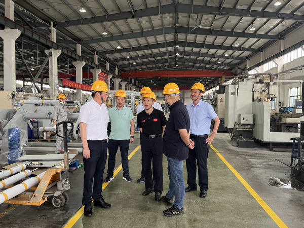龚方红一行深入企业一线,现场参观并进行考察交流,表示欢迎校友企业未来在产教融合、毕业生实习与就业等方面与母校进行深度合作,实现合作共赢。