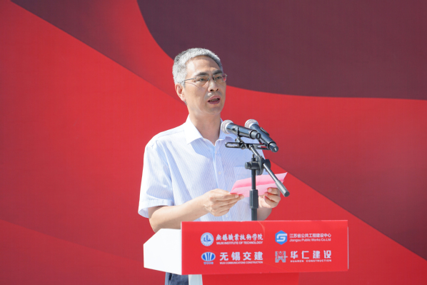 周桂瑾代表学校对出席项目开工仪式的领导及来宾表示欢迎,对各方长期以来对学校建设发展的关心与支持表示感谢,并介绍了学校在物联网学科专业、科学研究、人才培养等方面的发展现状。他表示,为更好服务区域、行业转型发展,培养更多工业物联网领域的技能精英,学校积极响应国务院和省委省政府的决策部署,主动服务《中国制造2025》和“一带一路”国家战略,全力开展了此次项目建设。周桂瑾期待,本项目的建成将为学校发展和办学水平的提升提供有力保障,为区域培养更多适应产业发展需求的高素质技术技能人才,为苏锡常都市圈经济发展提供有力的人才支撑,推动区域经济高质量发展。