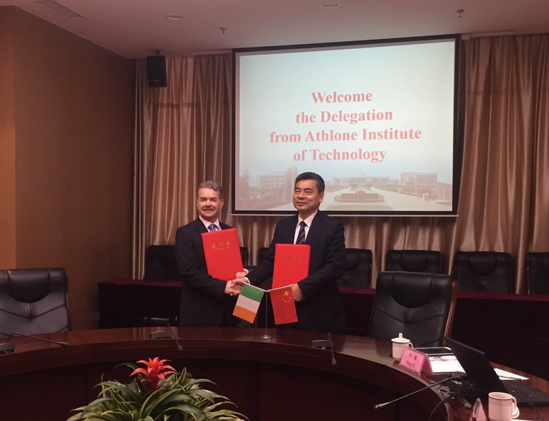 朱爱胜书记首先对卡荣校长的再次来访表示热烈欢迎,介绍了我校近阶段的建设发展情况,特别是2018年学校成功入选“江苏省卓越高职院校建设单位”,2019年学校荣登全国高职院校竞争力排行榜第四位。朱书记表达了学校高度重视爱尔兰学院的建设和发展,将全力打造高水平、高质量的中外合作办学示范工程。卡荣校长感谢玛雅吧 领导、教师和全体工作人员对中爱合作办学机构即将运行所做的精心准备和倾力付出,并表示阿斯隆理工学院将全力配合玛雅吧 开展招生宣传、教学和管理等一系列工作,为爱尔兰学院的每一位学生提供最优质的服务。爱尔兰学院平毅老师向代表团详细介绍了专业对接情况和招生情况。座谈会后朱爱胜书记代表学校与卡荣校长签署了爱尔兰学院办学执行协议,本次两校领导的会晤和成功签署办学执行协议将成为爱尔兰学院发展的又一里程碑。