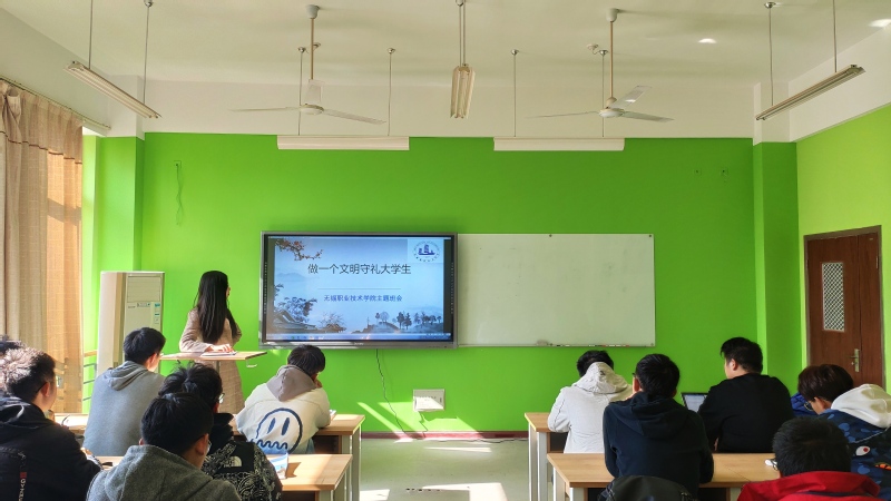 同期,学院各班级还组织召开同主题的班会,各班班主任通过理论讲授、感性号召,向学生展现了当代大学生的应有风貌以及如何向着目标迈进的途径方法。在班会中,还穿插着让学生自诊自改的环节,通过让学生自我反思,找出自身存在的不文明现象,再逐条列出,最后思考如何解决这些不文明现象与自己今后的努力方向。