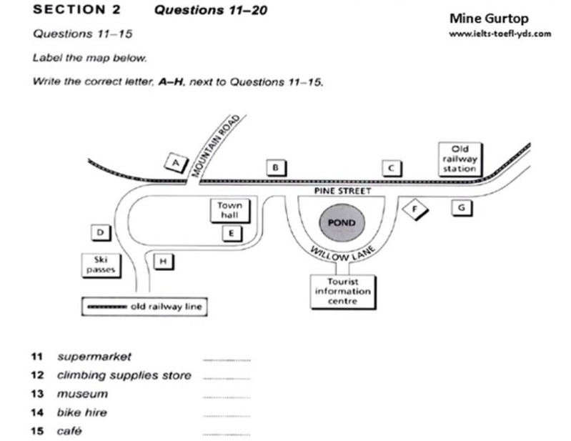 2. Area (区域型): 与街道类型相比,区域类型的范围则会缩小到某一个区域,比如学校体育场地的分布,需要考生根据录音内容填写上房间的名称或者场地的名称。C8T2S2中考查到了Forest, Fish Farms, Market Garden.