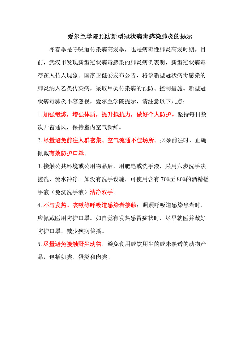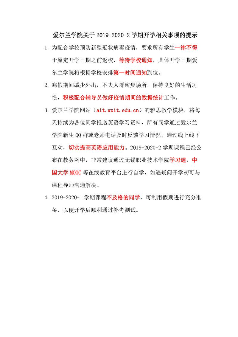 爱尔兰学院关于2019-2020-2学期开学相关事项的提示